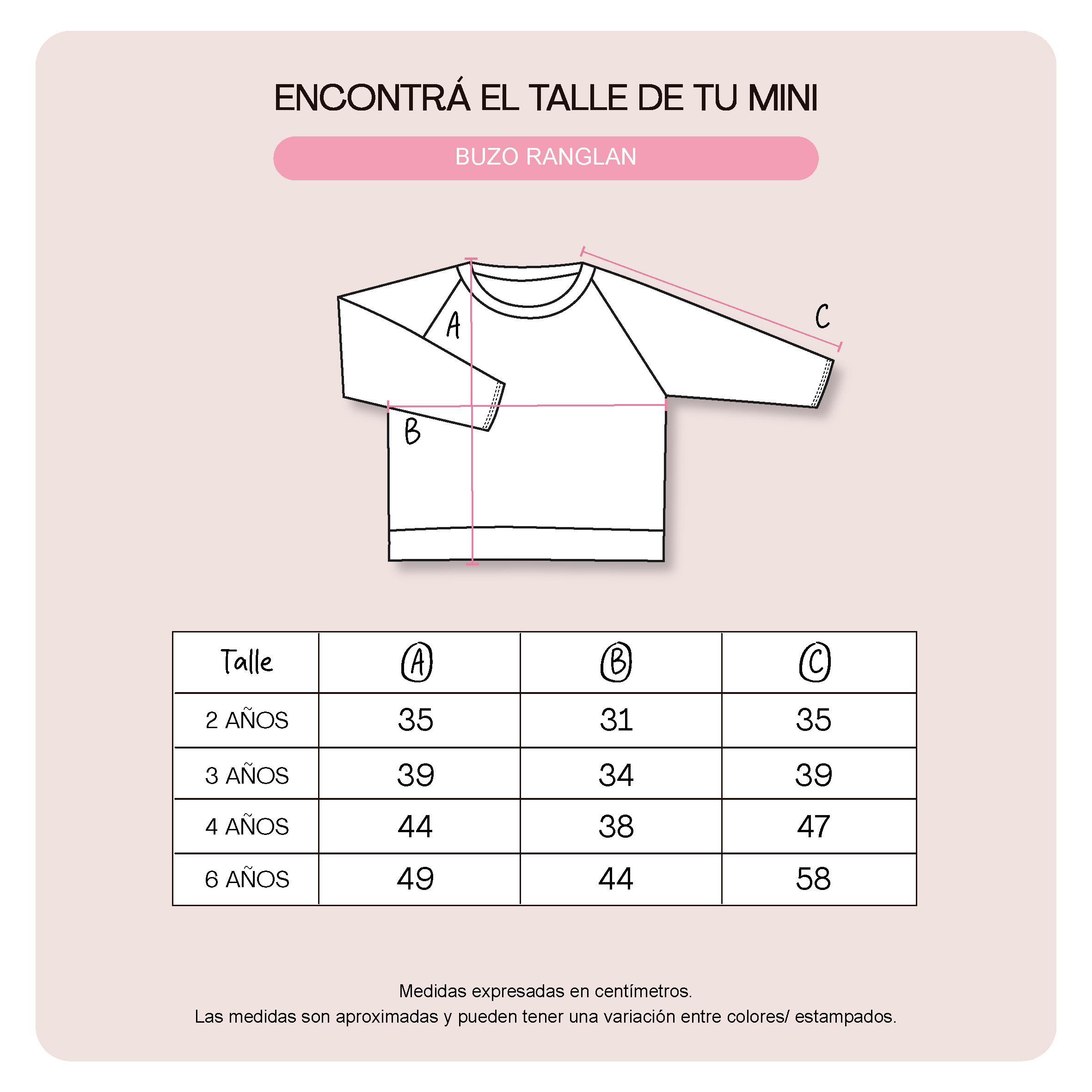 - Guía de talles: Podés utilizarla para comparar con las medidas de alguna prenda de tu bebé. Al tratarse de prendas con procesos manuales puede haber una mínima diferencia entre el producto y la tabla..