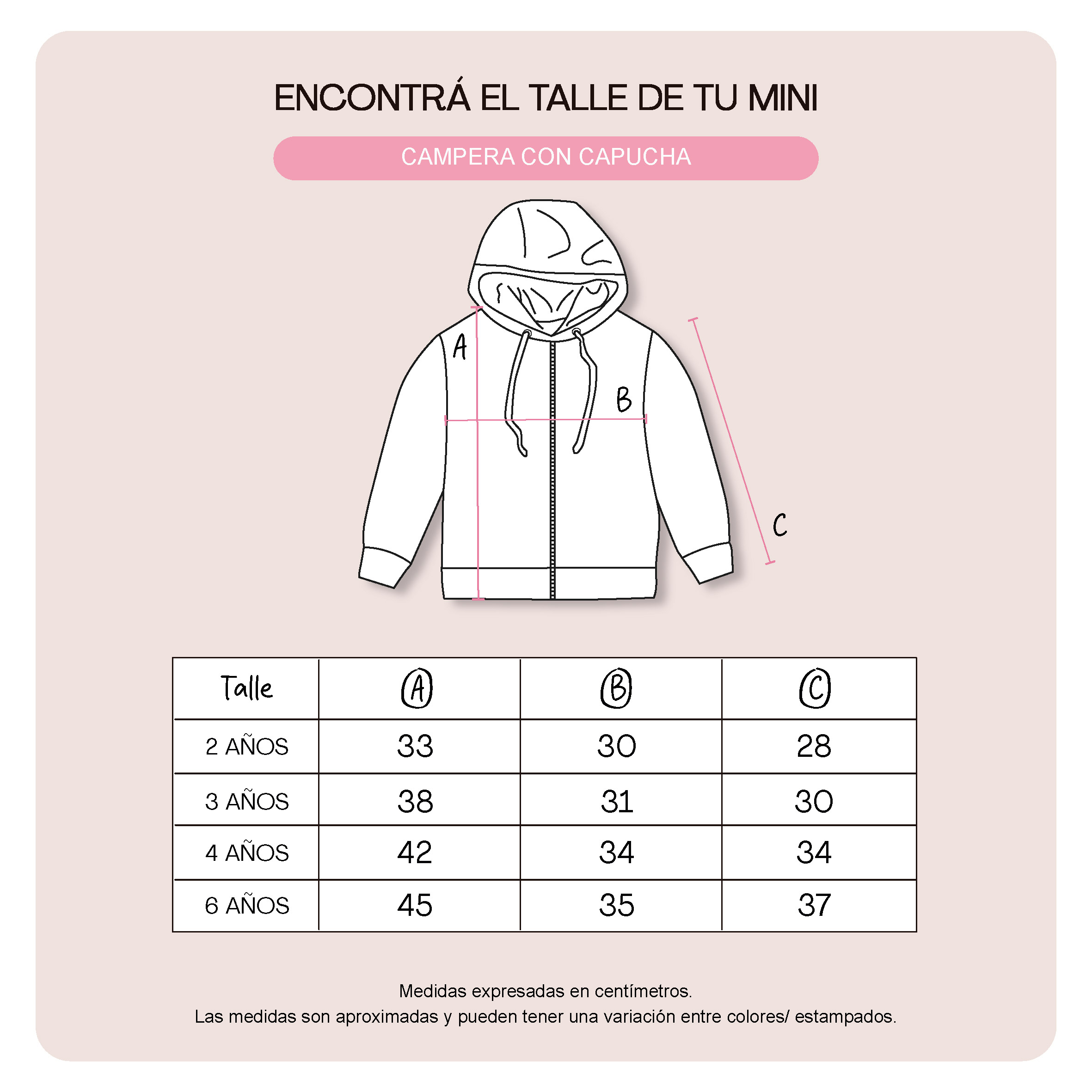 - Guía de talles: Podés utilizarla para comparar con las medidas de alguna prenda de tu bebé. Al tratarse de prendas con procesos manuales puede haber una mínima diferencia entre el producto y la tabla.