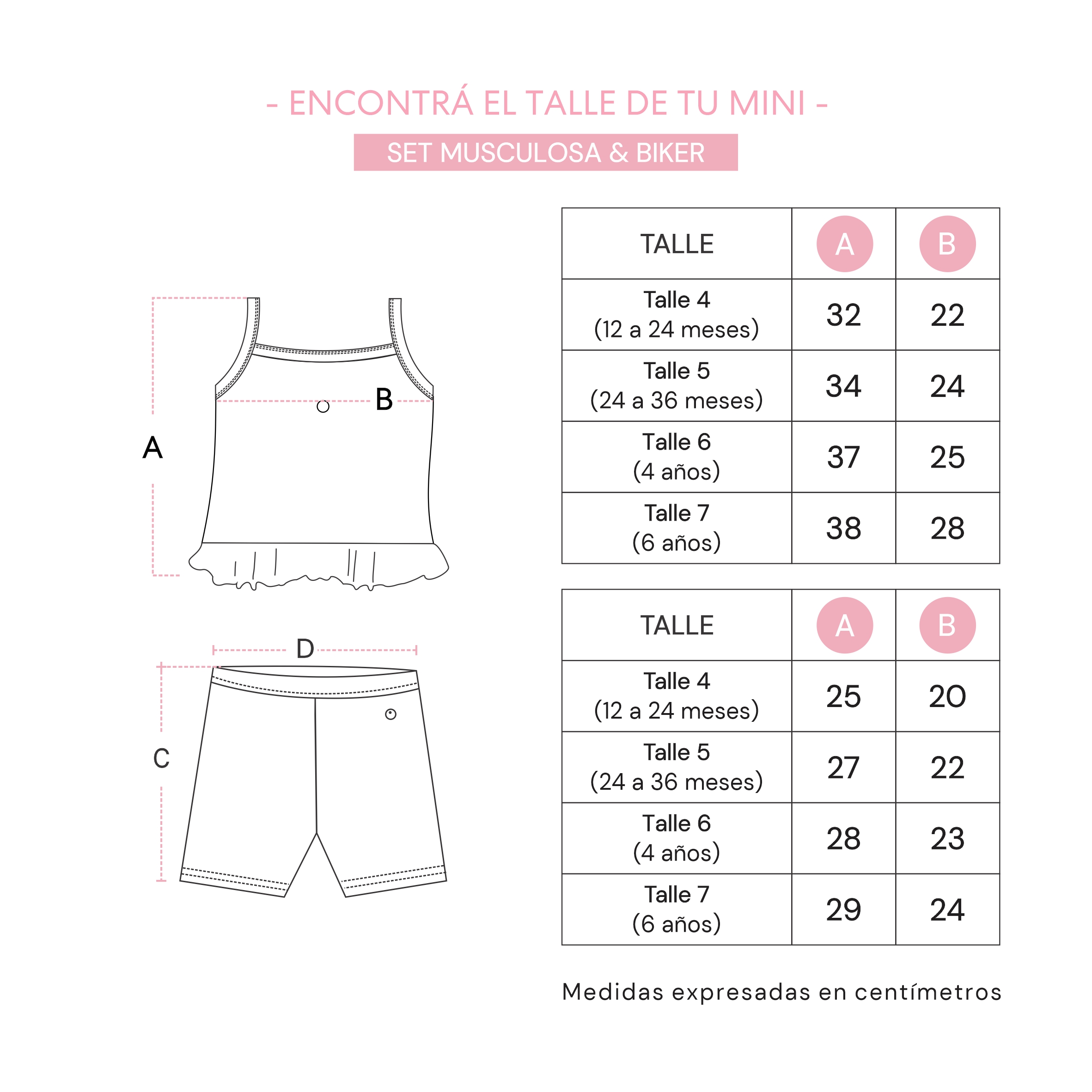 ¡Sumale a tu Mini un conjunto alegre, práctico y súper cómodo con nuestro Set Musculosa + Biker Estampada!