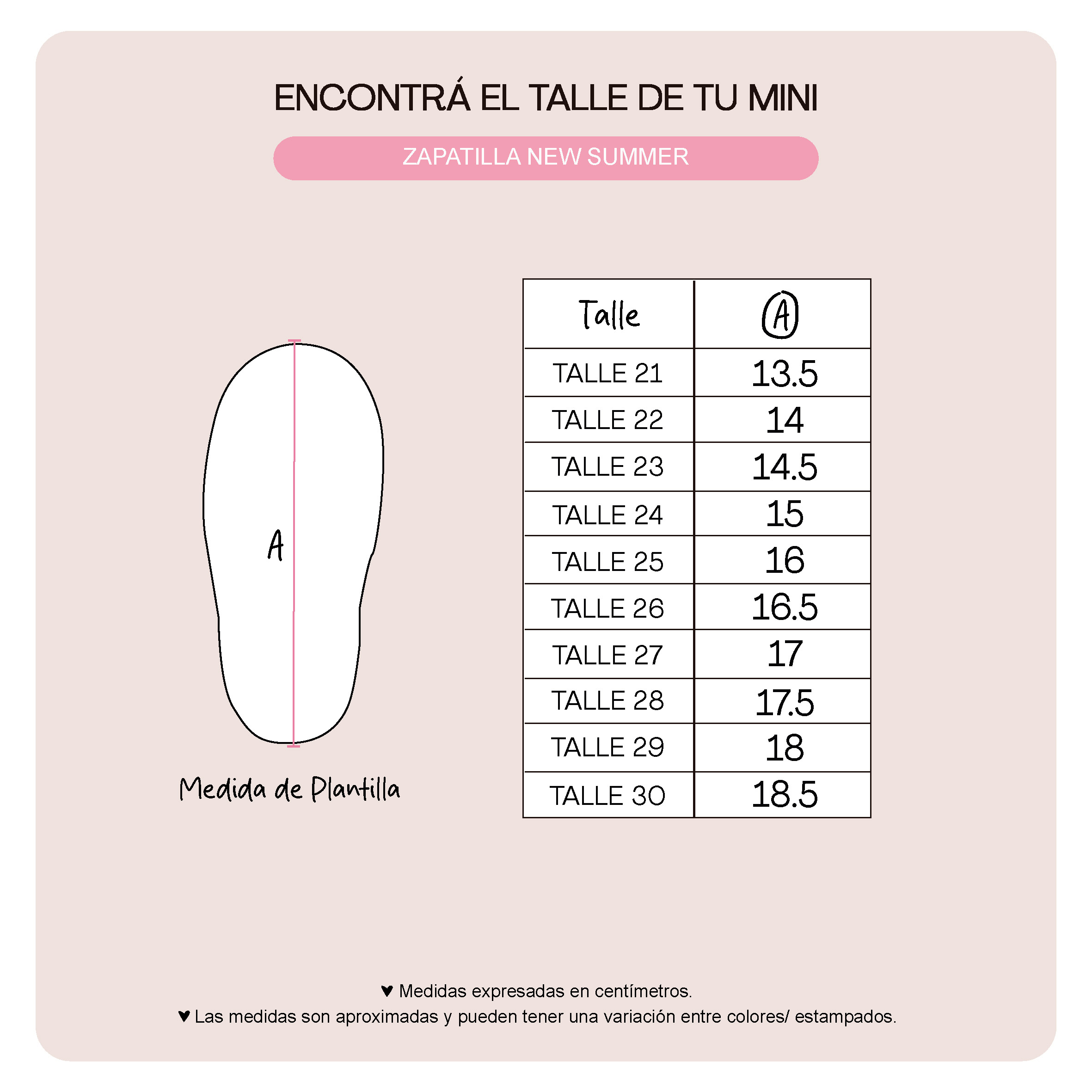 - Materiales Frescos y Livianos: Están confeccionadas con una combinación de materiales frescos y livianos, asegurando que los pies de tu mini se sientan cómodos y bien cuidados en días cálidos.