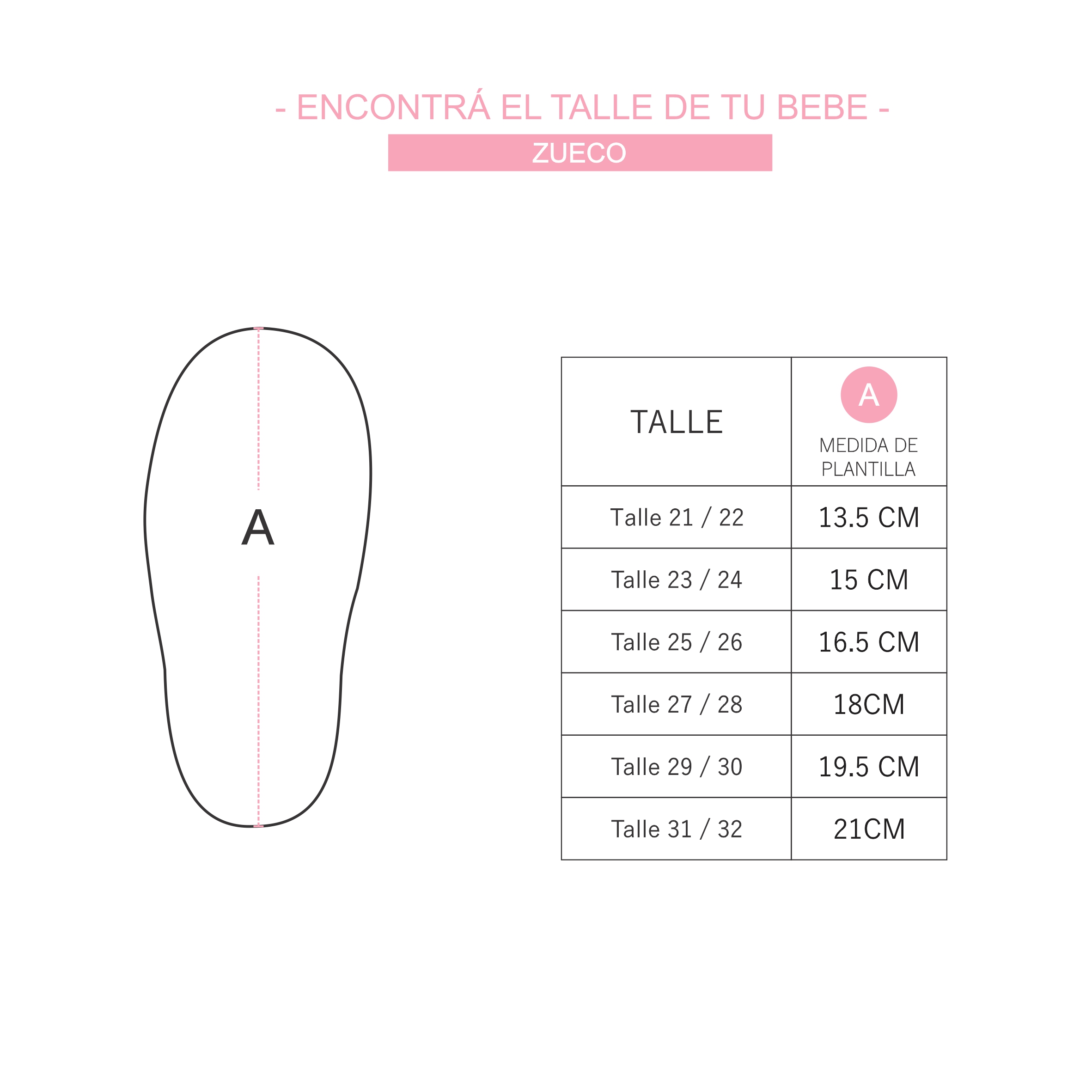 - Talles: Disponible en 6 talles desde el talle 21 al 32. Abarcando aprox. desde el año hasta los 8 años.